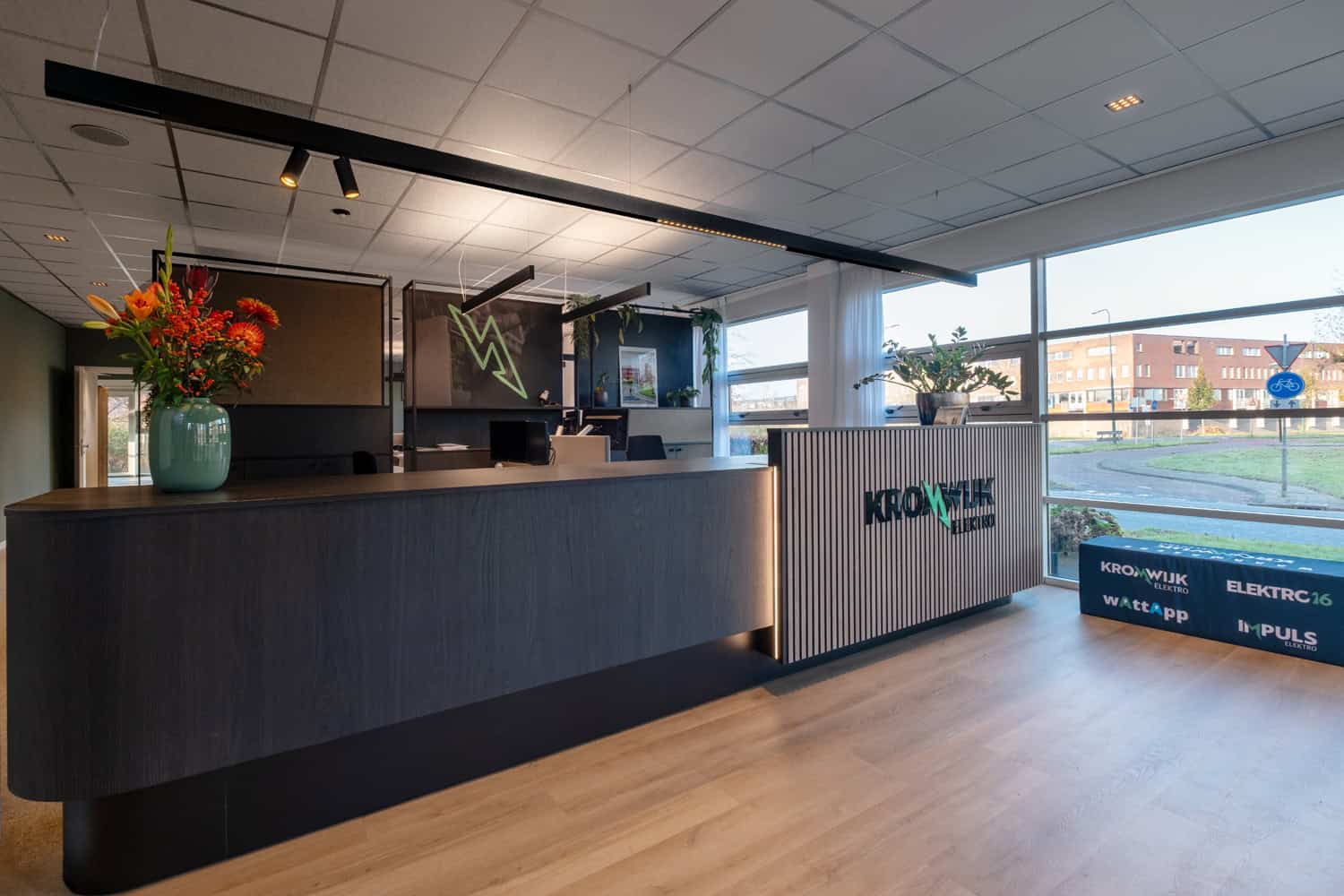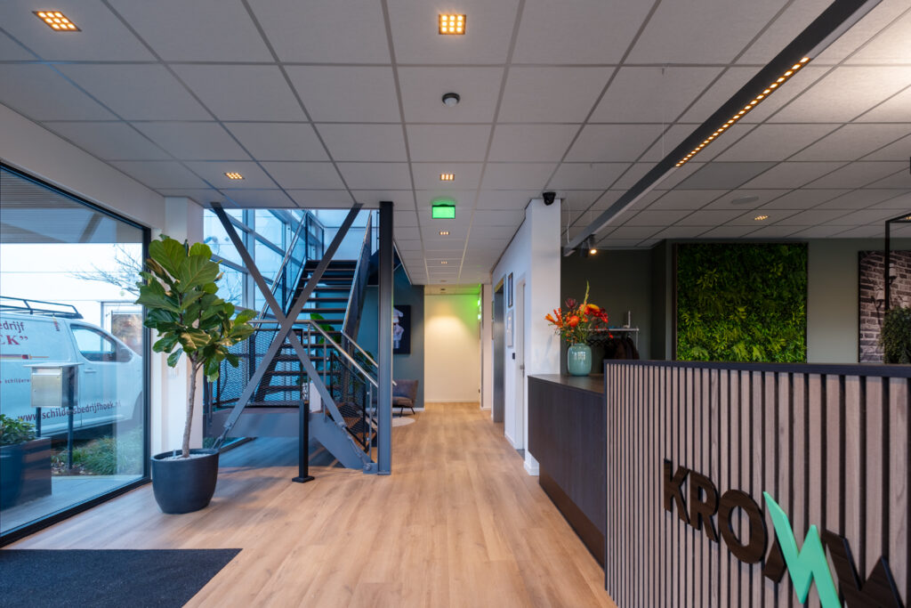 Kromwijk Elektro heeft onlangs haar intrek genomen in een prachtig nieuw bedrijfspand in Woerden, centraal gelegen vlak achter de A12 en slechts 100 meter van de ‘oude’ vestiging. Het nieuwe pand is warm en sfeervol ingericht, met oog voor detail. Het is een plek waar collega’s optimaal kunnen functioneren en klanten zich meteen welkom voelen.
