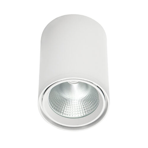 Krachtige doch elegante LED opbouwdownlighter. Uitermate geschikt om toe te passen in (hoge) vides. Aluminium huis. Gefacetteerde aluminium reflector. Helder afschermglas. Garantie 3 jaar.