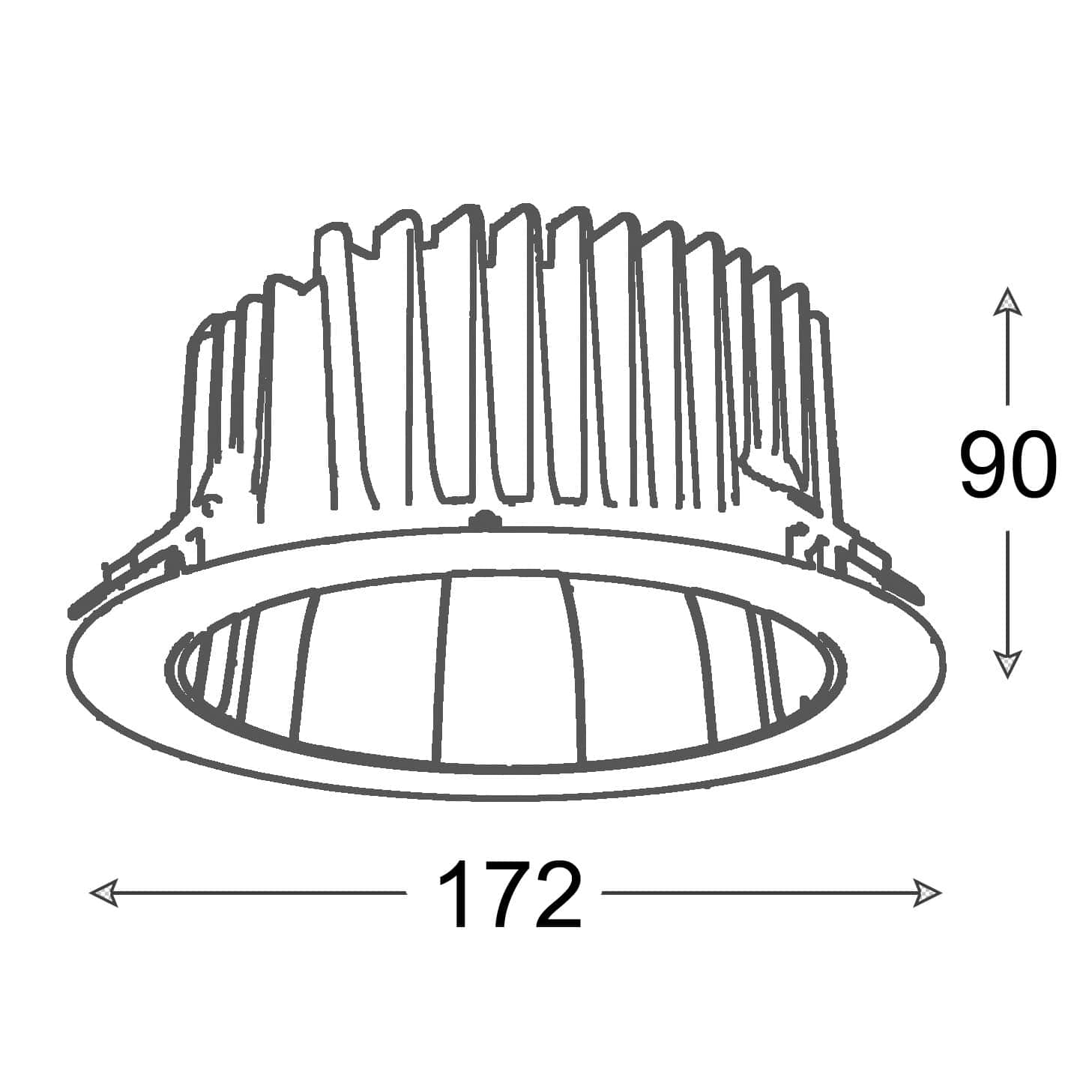Multifunctionele LED downlighter. Kantoren, winkels, gangen en openbare ruimten. Hoogglans reflector. Prismatische diffuser. Gietaluminium huis en zichtring. Voorgemonteerd GST18i3 aansluitsnoer 0,5 m. Garantie 5 jaar.