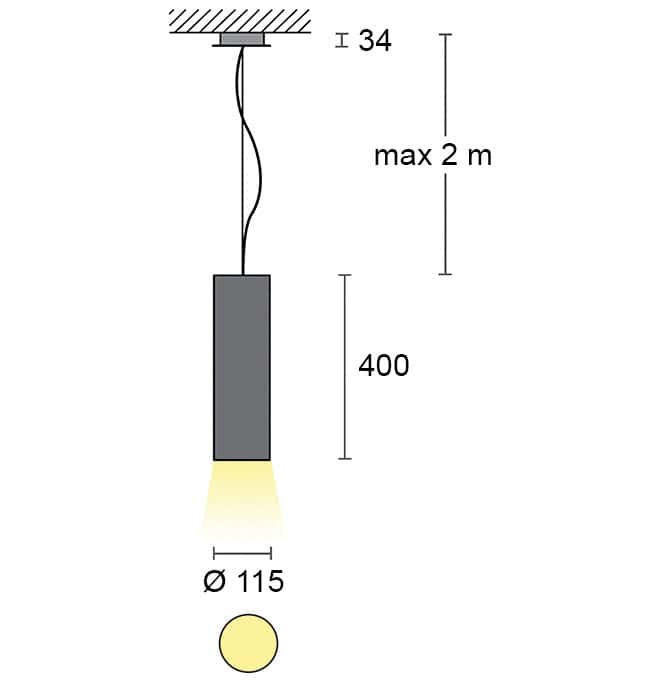 - Lengte staaldraadophanging naar keuze.