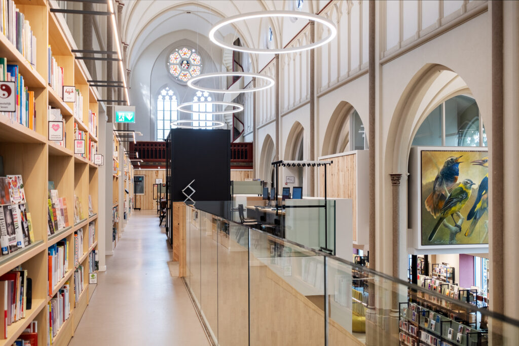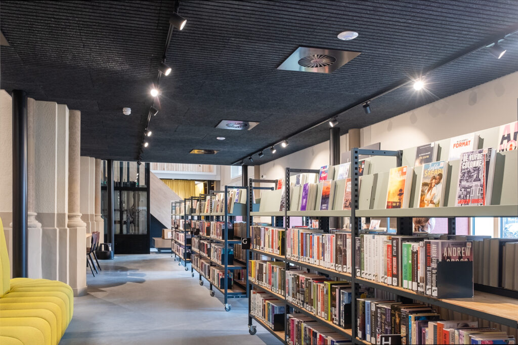 Pendelarmaturen met up- en downlight geven het gebouw een strakke uitstraling die zijn rijke geschiedenis weerspiegelt. Energiezuinige inbouwspots, inlegarmaturen en railspots in de gangpaden, de bibliotheek, de toiletruimtes, bij de kinderopvang en de GGD zorgen vervolgens voor algemene verlichting, waardoor de ruimtes efficiënt en duurzaam worden verlicht.