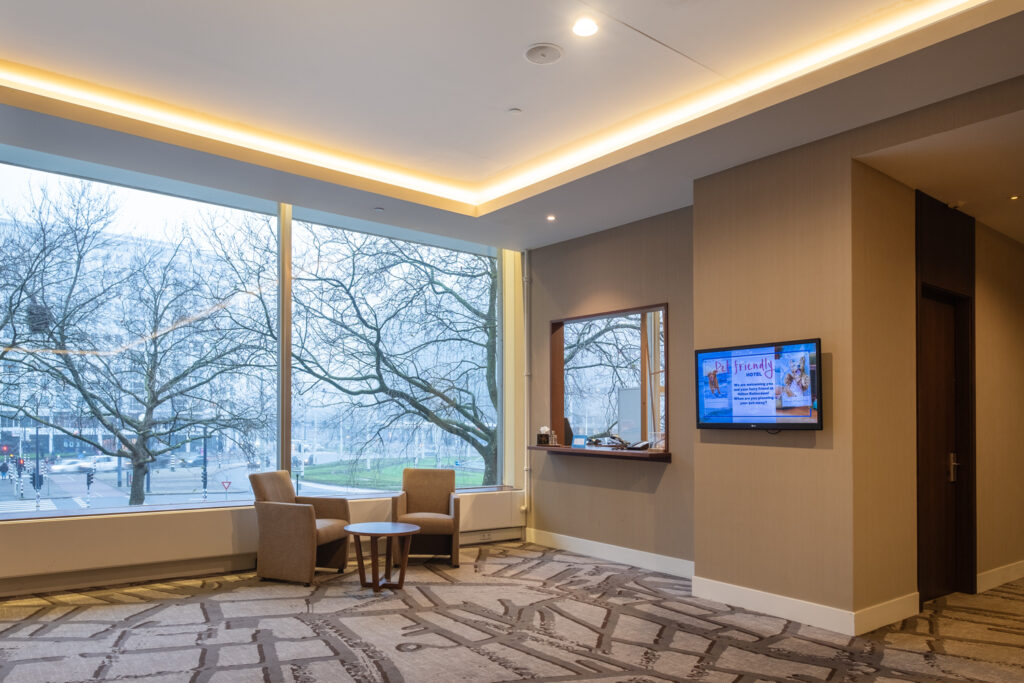 De algemene ontvangstruimte ademt hierdoor sfeer en ambiance uit. De creatieve mogelijkheden van deze verborgen LED lijnen zijn optimaal benut en zorgen voor zacht en diffuus licht dat als zeer prettig ervaren wordt door de bezoekers en gasten van het Hilton Rotterdam.
