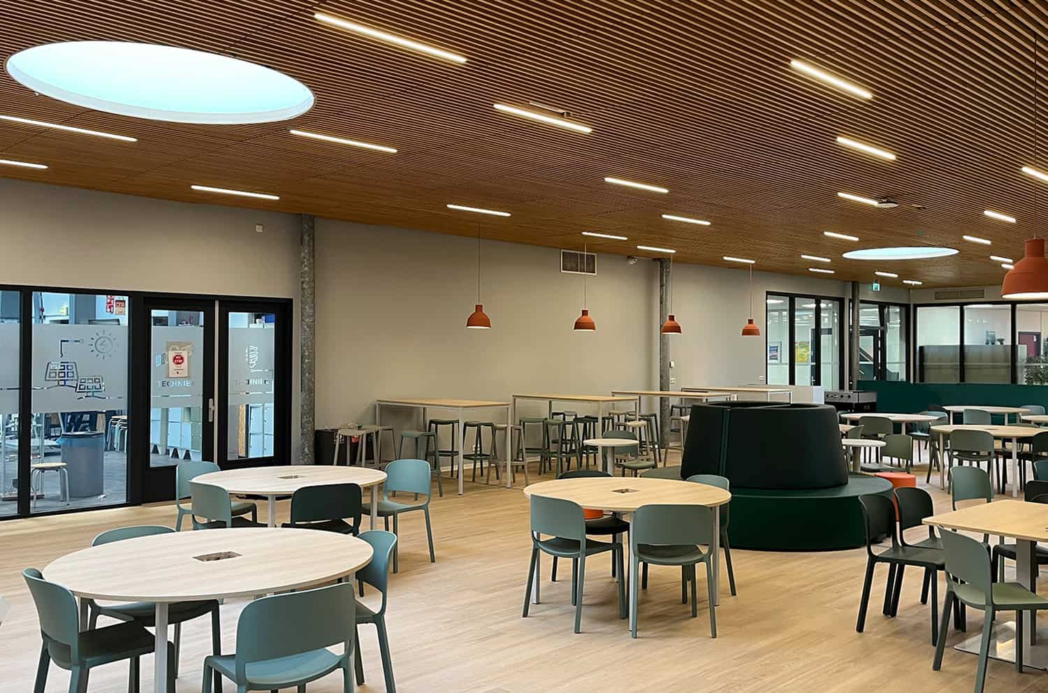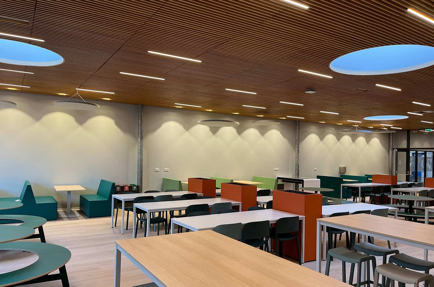 De bestaande verlichting was gemonteerd tussen de houten plafondpanelen. Moeilijk te demonteren en te vervangen. Oftewel; een prima project waar LEDwerk, dat onderdeel is van ETK licht, een op maat gemaakte oplossing voor kon maken. In de bestaande profielen zijn energiezuinige LED-modules gemonteerd. Hierdoor bleef het sfeerbepalende plafond intact en het resultaat was een duurzame en comfortabele lichtoplossing.